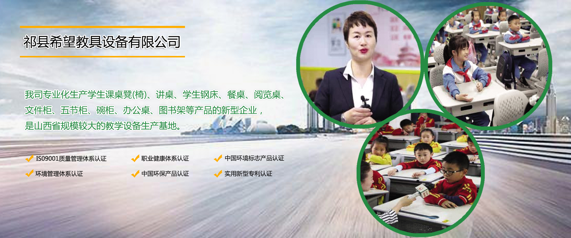 山西省祁縣希望教具設備有限責任公司成立于2006年10月12日(前身祁縣希望教具廠,始建于2002年1月),是專業化生產學生課桌凳(椅)、講桌、學生鋼床、餐桌、閱覽桌、文件柜、五節柜、碗柜、辦公桌、圖書架等產品的新型企業,是山西省規模較大的教學設備生產基地。現有員工140余人,其中管理人員5名,高級技師20名,設計師2名。山西省祁縣“希望世家”產品經過多年不斷設計、開發,已形成完善有效的企業運營模式,祁縣“希望世家”教具品種齊全、品質優良、服務上乘、暢銷省內外,深受新老客戶好評,祁縣“希望世家”產品已經成為山西省同類產品的知名品牌。本公司近年來投入巨資,進行改建、擴建,規模宏大,堪稱一流。生產設備投入全自動無毛刺切割機、采用大量機器人焊接,技術水平均以達到國內先進水平。生產產量急劇增長,日生產課桌登2000金套、高低床500金套,儲物柜500余件,年產值達到四千余萬元。本公司通過了IS09001質量管理體系認證、環境管理體系認證、職業健康體系認證、中國環保產品認證、中國環境標志產品認證等,使公司產品質量臻于完美,我們“希望人”深知“質量是企業的生命”我們不滿足于現在的完美,因為我們懂得精益求精才是我們不斷的追求,我們只有不斷超越今日所有,才能讓我們的“希望世家”產品獨領風騷!祁縣“希···